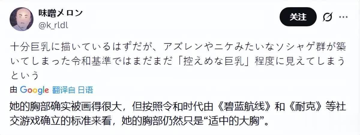 早在两年前,有日本画师发帖批判过,自己画的女角色,在一些人眼中显得不够“大”的问题。这位画师认为,造成大家评判标准变高的主要原因,是如今二游推出了太多数值怪,其中还特别点名了《碧蓝航线》。