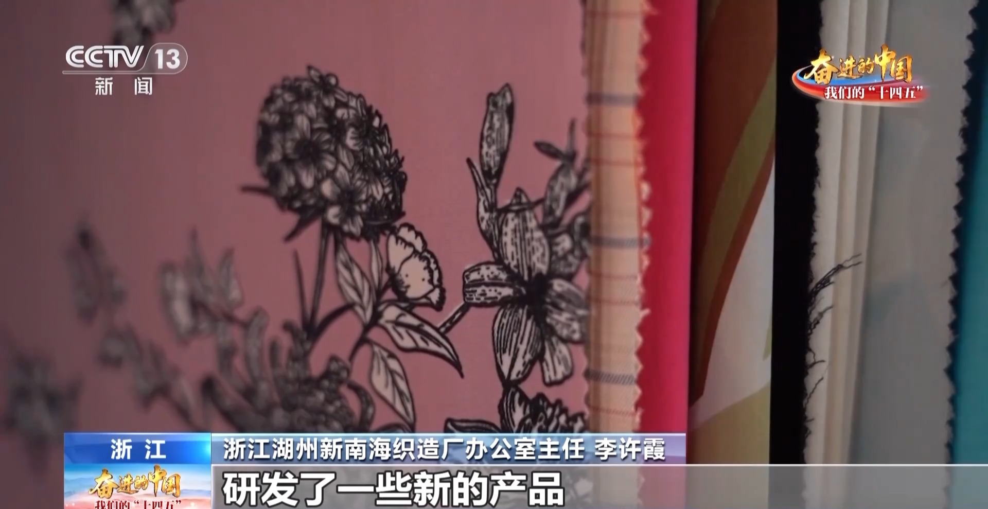 浙江湖州新南海织造厂办公室主任 李许霞:我们长期以来跟高校合作研发了一些新的产品,像重磅类的真丝、重磅类的弹力真丝、交织的一些面料,瞄准绿色低碳,新型纤维的材料做研发,赢得了市场的青睐。