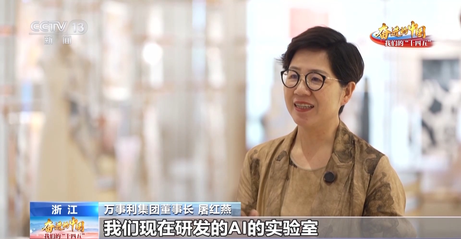 万事利集团董事长 屠红燕:我们10年前早早地布局数字化,我们现在研发AI的实验室,可以为全球80亿人设计10万条丝巾不重复,AI的算法融入了300多个AI的模型,从而让我们的设计师,设计一条丝巾它可以在一分钟内就设计出来。